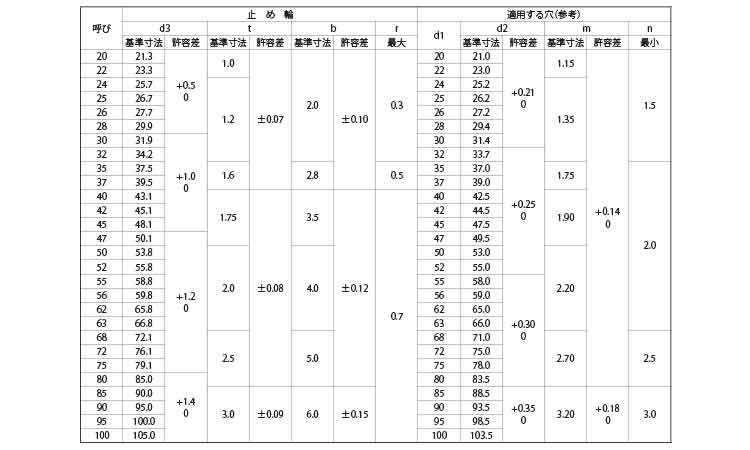 JIS穴無同心止め輪(穴用・平和