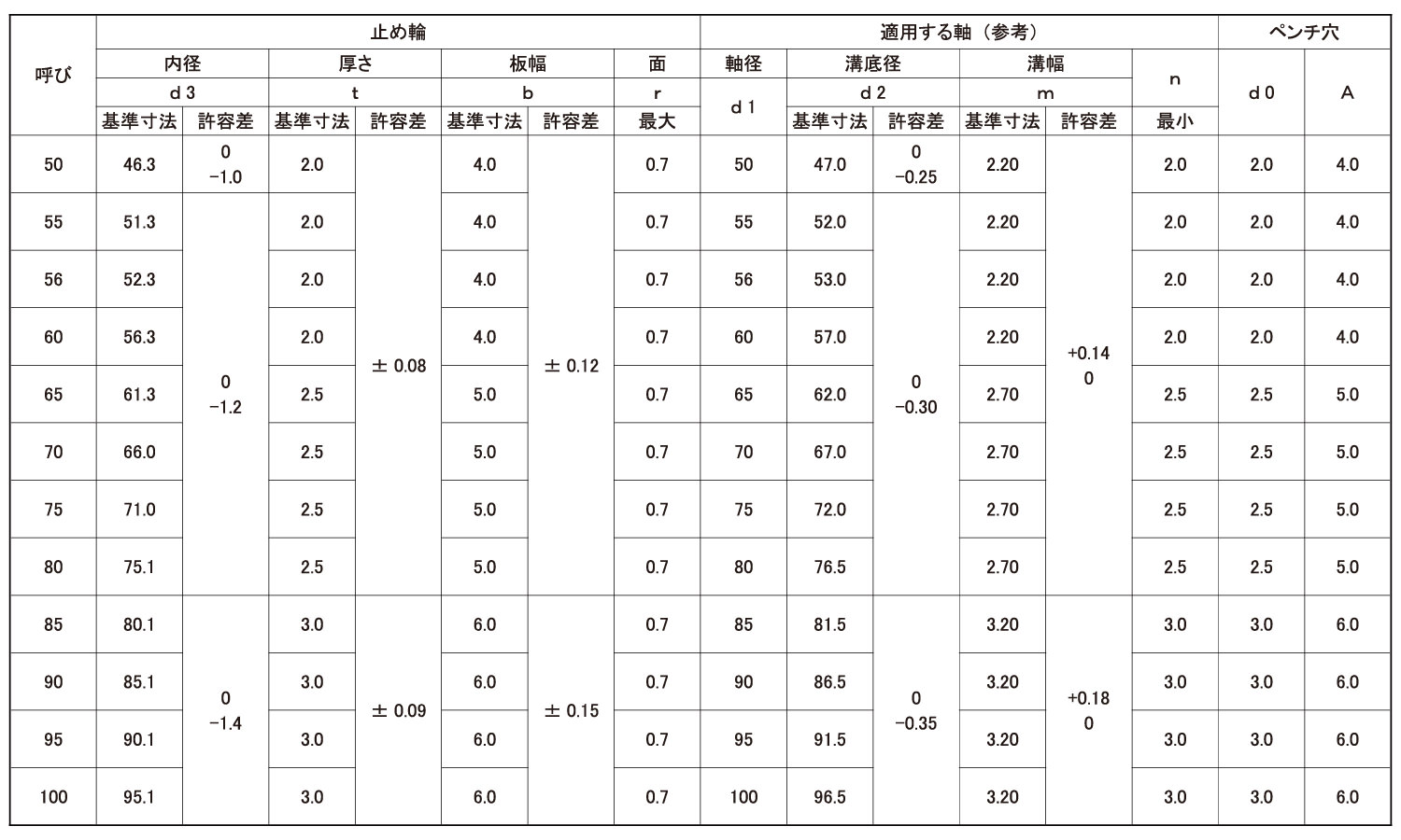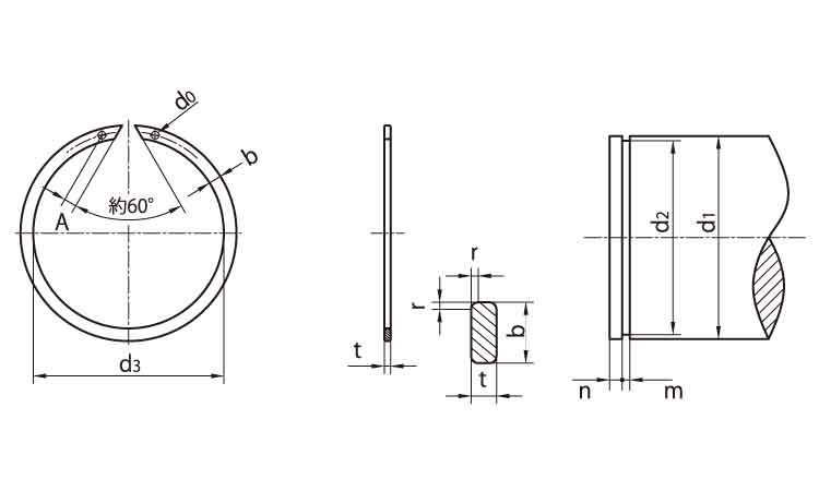 JIS穴付同心止め輪(軸用・平和