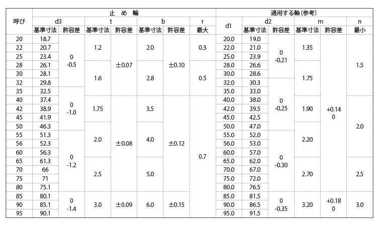 JIS穴無同心止め輪(軸用・平和
