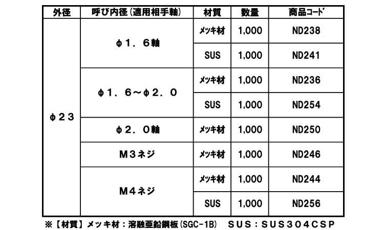 ステンレス | 生地 | 256 M4X23 | あり | なし | 1,000 | 9.21円 8.38円 |