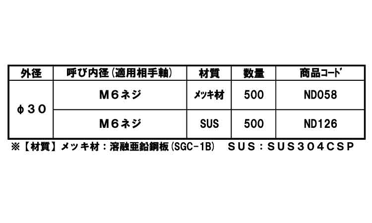ステンレス | 生地 | 126M6X30 | あり | なし | 500 | 56.84円 51.68円 |