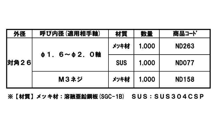 ステンレス | 生地 | 077 1.6X26 | 要確認 | なし | 1,000 | 14.43円 13.12円 | ||