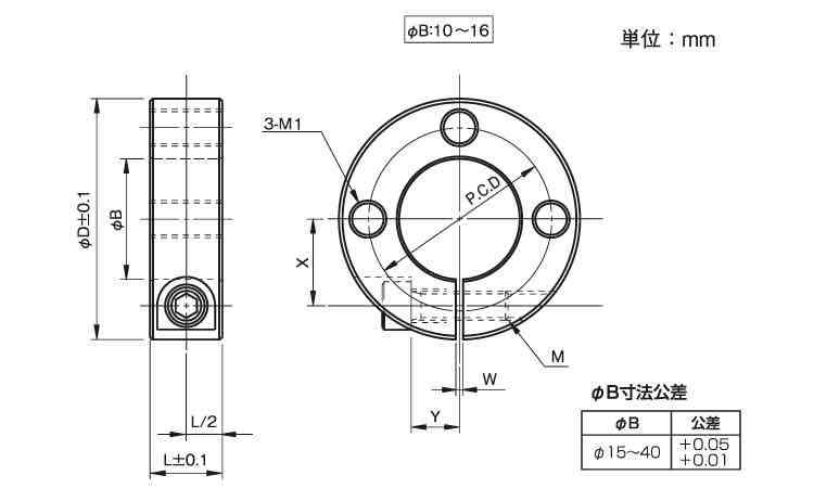 スリットカラー 3ネジ穴付