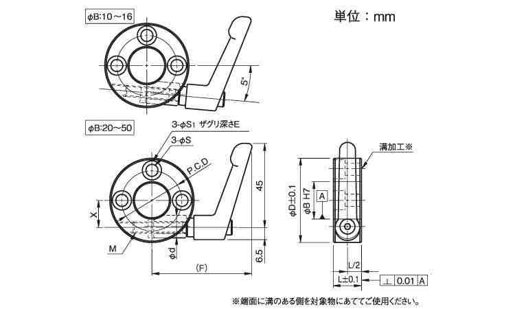 クサビカラー3ザグリ穴レバー付O