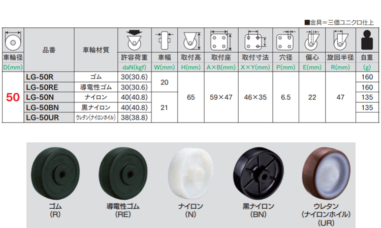 軽荷重向け自在車プレート式LG型