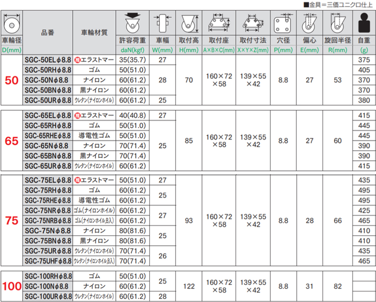 軽荷重向け自在車プレートSGC型