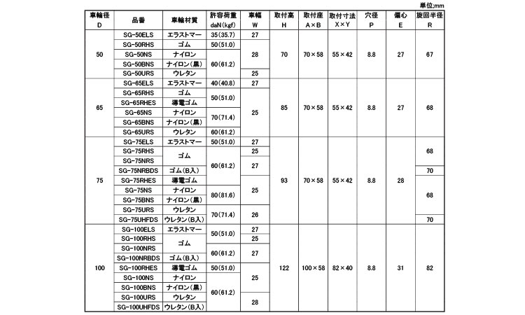 軽荷重自在プレート式SG-DS型