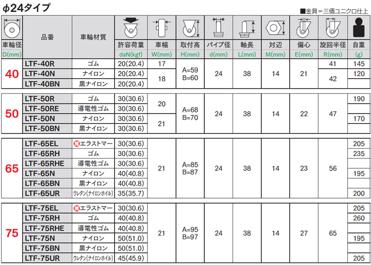 軽荷重自在車差し込LTF型Φ24