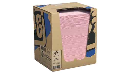 ・ピグ ハズマット パッドとロールは、高濃度の腐食性液体を吸収できるよう特殊加工を施しており、