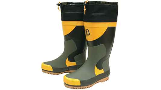 柔らかい天然ゴムと硬いセラミックが前後のソールに配合されたゴールド底使用