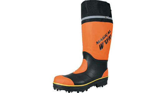 ・防滑スパイクソール:鋼製スパイクとゴムスパイクが斜面で威力を発揮