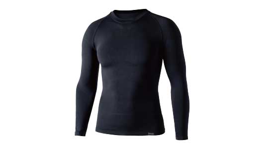 異素材2層構造が汗を瞬時に肌面から外側へ移動、汗冷えを防ぐ。また、