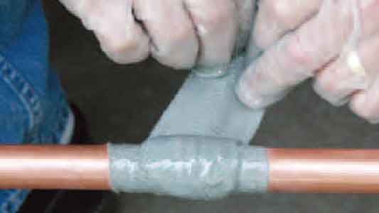 混ぜ合わせ補修箇所に貼り付ければ約15分で固着し、破損などの応急処置だけ