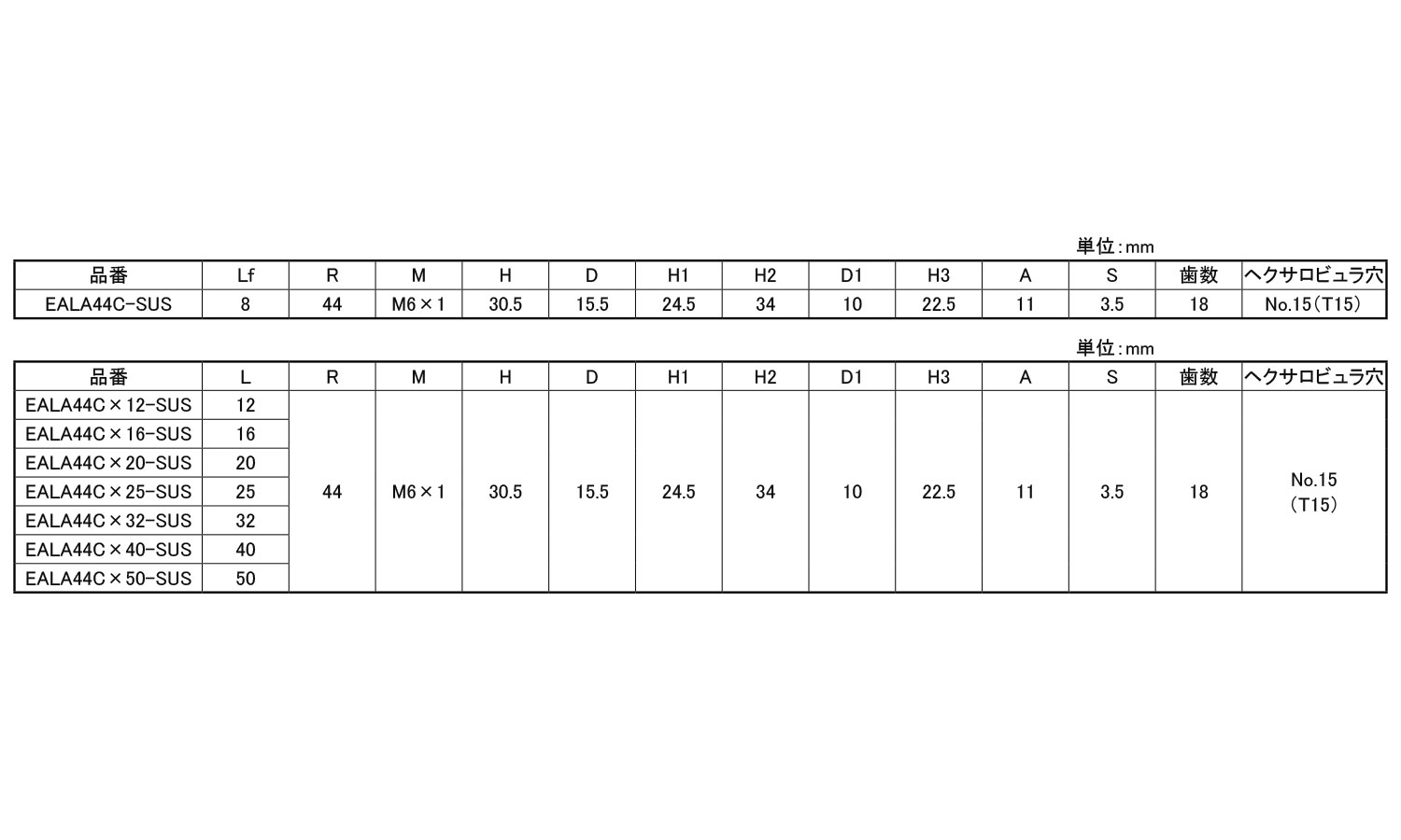 鉄 | EALA44C-50-SUS | 要確認 | なし | 1 | 3,080円 2,800円 |