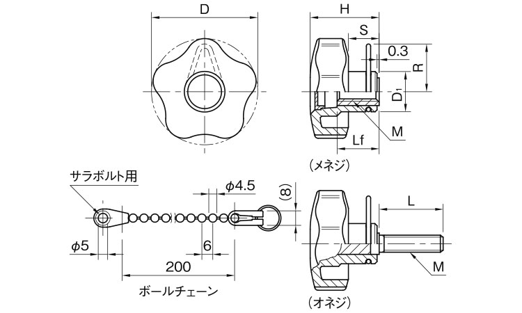 サイズ 径+長さ(ℓ) |