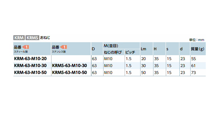 鉄 | KRM-63-M10-50(1イリ | 要確認 | なし | 1 | 1,192円 1,084円 |