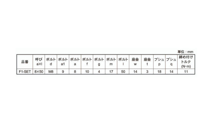 鉄 | F1-SETM8X50 | 要確認 | なし | 1 | 752円 684円 |