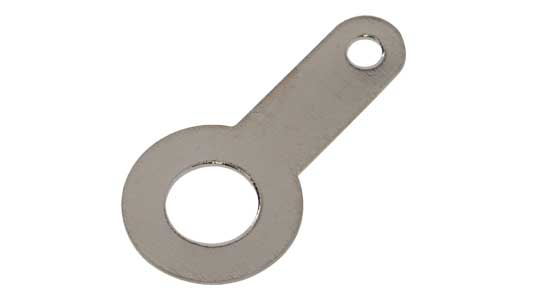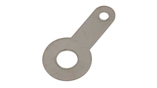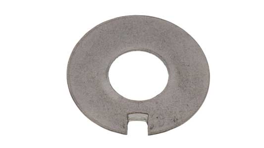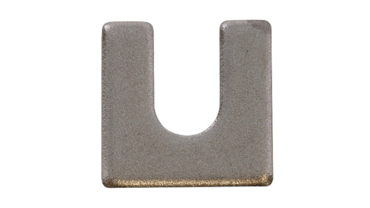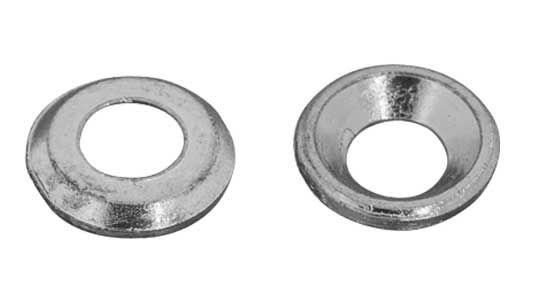 ナットなどの下に入れることによって、なじみをよくすることのできる部材です。丸い形をした平座金を中央から半分に曲げたような形をしているのが特徴。